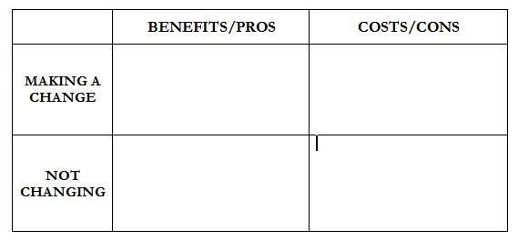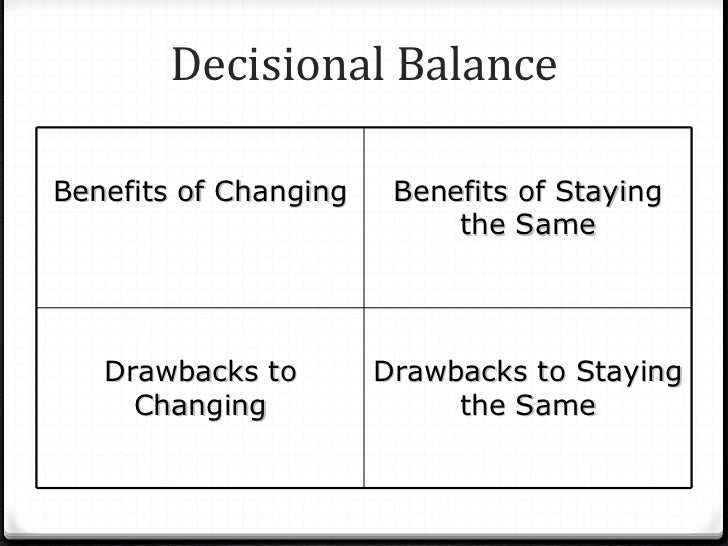 Worksheets are decisional balance w ork, decisional balance exercise, decisional balance work, decisional balance work, using a decision balance to clarify your issues about change.